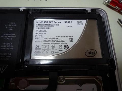 下記写真が【ドライブ①編】で「Intel SSD 320 300GB」に載せ替えるSSDです。