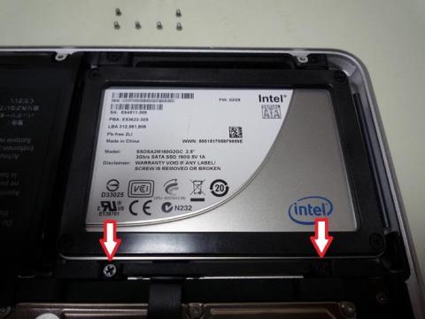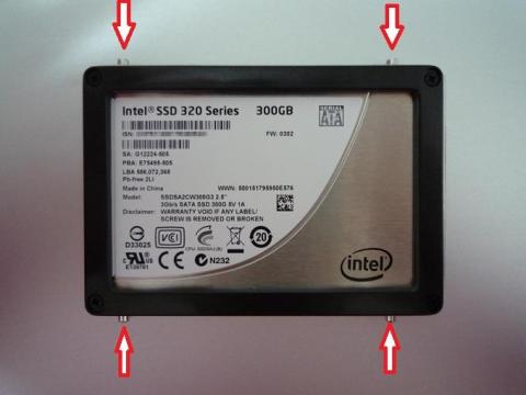 外したトルクスネジを、「Intel SSD 320 300GB」に取り付けます。