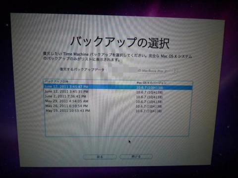 そのバックアップデータ内にある任意の復元日時を選択します。