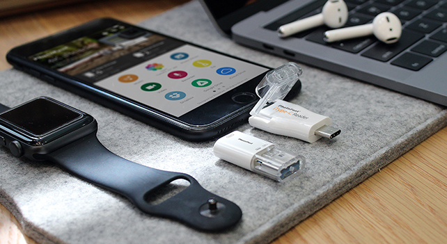 iOS専用の Lightningコネクタ、USB-C、USB 3.1 Gen 1、Micro USBの4つが搭載された外部ストレージ。薄型で本体重量が7.6gとコンパクトなのに、MacBookとMacBook Proの完全互換性があり、iPhoneとiPadに接続すればさらに容量を拡張することが可能です。またiOS、macOS、Windows、Android、Linux、Smart TVなど多種類のファイル形式に対応し、iOSとAndroidなどOSやハードにとらわれることなくデータ交換ができます。