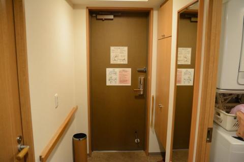 リビングに通じる廊下にはドアがあるので、リビングに犬を入れてドアを閉めておけば外に飛び出すことはありませんが、ここが開いていると廊下に飛び出してしまうことも。