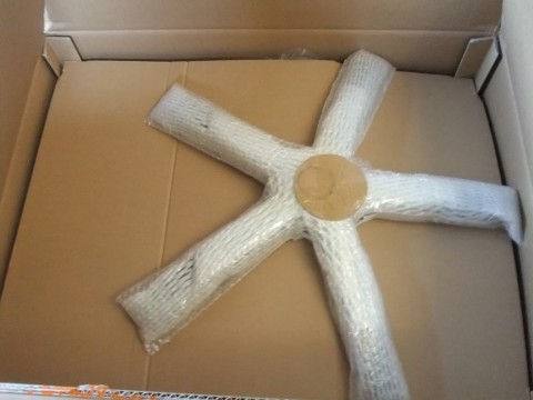 梱包材でしっかり巻かれた足部分が目に入ってきます。他のパーツは段ボールを