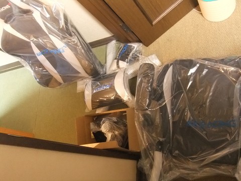 写真の通り内玄関が占拠されました。前述の通りオフィスチェアは何台か購入