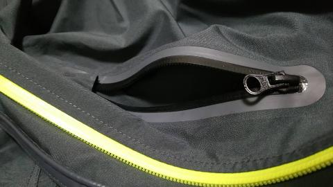 ポケットは胸と両腹、全部で3箇所付いています。すべて止水ファスナーで防水となっていますので、雨を完全にシャットアウトしてくれます。スマホなどの電子機器も安心です!