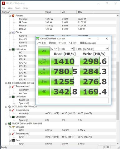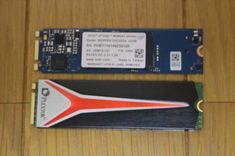 Windowの起動ドライブにはNVMeのSSDを使い、データドライブにはHDD+インテルOptaneメモリー。