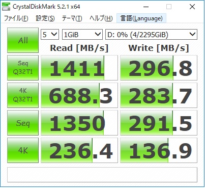 最近のNVMeのSSDとしては、決して高速な部類には入りませんが、HDDやSATAのSSDと比べると、雲泥の差があります。