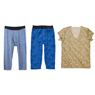 夏の時期に重宝する冷感生地を使用したニーレングス。膝裏までカバーする長めの裾丈は膝裏のベタつきを防ぎ、腰周りも快適。南国テイストの植物柄をプリントし、見た目も涼しげです。ウエスト部は縦横に伸縮するニットゴムゆえ身体の動きに自然に追随し、履き心地も快適です。