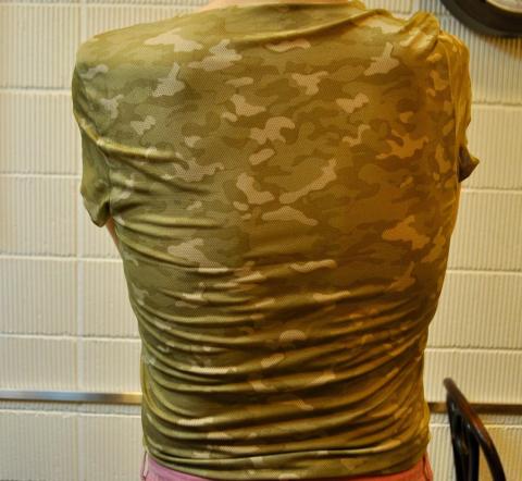 次は柄物ですが、シャツを着て熱帯夜の中を歩き、汗だくになった後の背中を撮影しました。