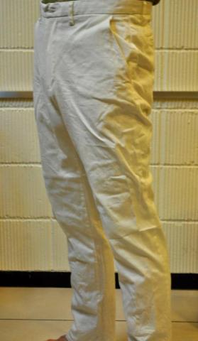 裏地の無いコットンパンツやチノパン、あるいはジーンズに合わせると、特に夏場においてベタつきを感じずに済みます。