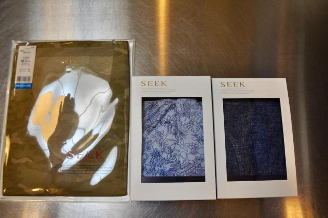 ウエストゴムは、伸縮性の高いニットゴムを幅広採用しているので、腹部にゴム跡が残る心配は殆ど無いと思います。 ブランドロゴのSEEKが誇らしげです。