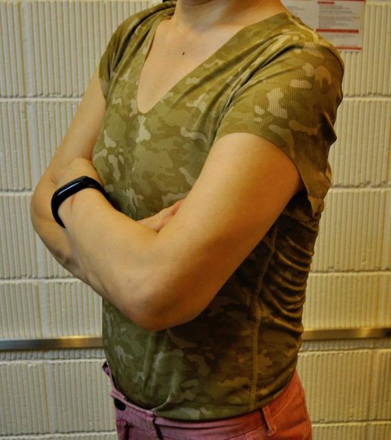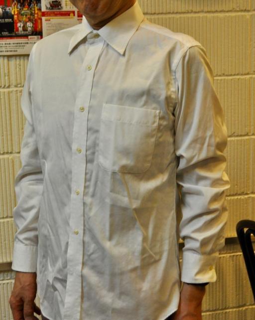 細めのシャツなのですが、首周りや袖口に下着の型紙を想像させる映り込みや膨らみは見て取れません。 カットオフ®の恩恵を確認することができました。