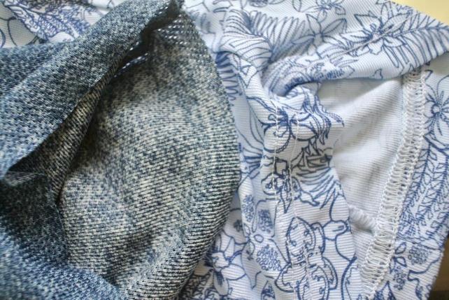 下のボタニカル柄は<シーク>ニーレングス(EE0207/)折り返し縫いが確認できますが