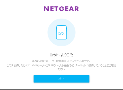 Orbi サテライトとOrbi ルーターの同期が上手く行けばOrbi サテライトのリングLED(天板の縁のLEDライト)が青色に点灯します。