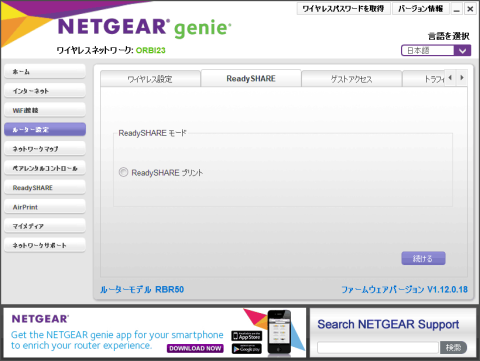 Orbi (RBK50)はReadySHARE機能のうち、ReadySHAREプリントのみの対応のようです。