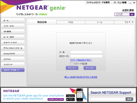 ネットワークサポートでは、MyNETGEARへのサインインを要求されます。