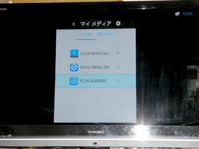 マイメディアを選択して、ソースで「PC:ALIENWARE」を選択すると、共有されている動画ファイル等が見れます。