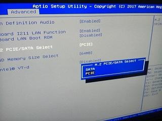先にBIOSでPCIE/SATA SelectをPCIEを選択する必要があったことです