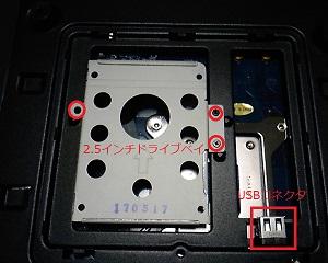 ドライブベイ 2.5インチ(HDD/SSD対応) 底面 9.5mm厚まで(ブラケット高7mm)
