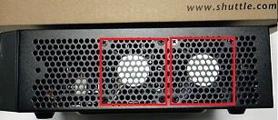 フロントパネルから見て右側に60mmファンが2機付いていますシャーシから排気 左側も同様にメッシュ