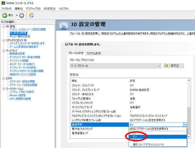 その問題を解決するのに、グラボ側で“垂直同期”という設定をonにすることで“テアリング”は大きく改善されます。