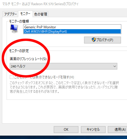 AMDのグラボで、さらにAW2518HFが本領発揮できそうです。