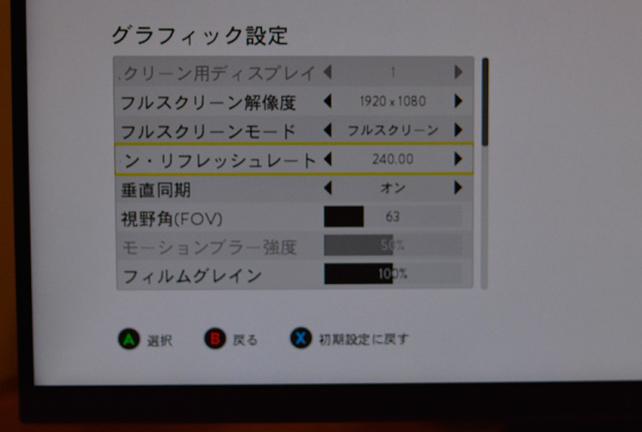 バイオハザードではディスプレイ周波数を240Hzに設定することができたので、これは期待大です。