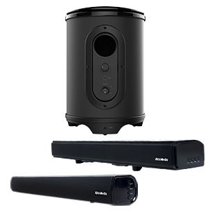アバーメディア製品の中で、サブウーファーを内蔵している2.1chサウンドシステムは「Sonicblast GS333」だけ。重低音に優れ、戦場ゲームでは足音までクリアに聞こえます。モバイルデバイスから「Spotify」「Apple Music」などのサービスを使えば、ワイヤレスでストリーミングして音楽を楽しむこともできます。