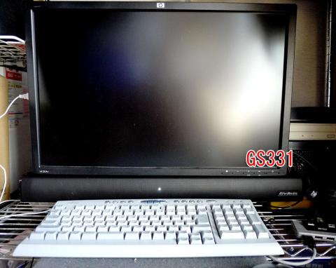 Sonicblast GS331, Sonicblast GS333はゲーミング用サウンドバーという名の通り、サイズ的にもPCモニタの下部において使用することを想定しているものと思われます。自宅で使用している24インチモニタの下部に設置して左右が少しはみ出す程度なので、27インチ程度のPCモニターならばジャストサイズかもしれません。