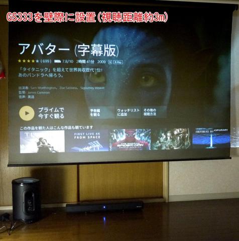 自宅でのプロジェクターに使用する場合、GS331,GS333は床置きになります。この場合、干渉するものはあまりないので特に設置上の問題はありませんでした。