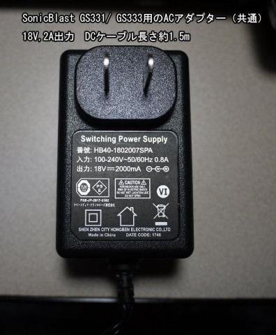 Sonicblast GS331, Sonicblast GS333のACアダプターは共通のものでした。