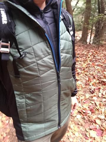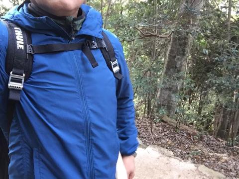 ・普段のトレッキングは「モンベル ライトシェルベスト」を着用してましたが、