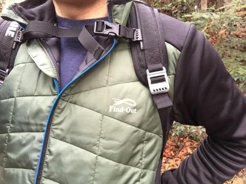 冬場のトレッキングは、「クロスシールドベスト」中間着として着用して、アウターを羽織る