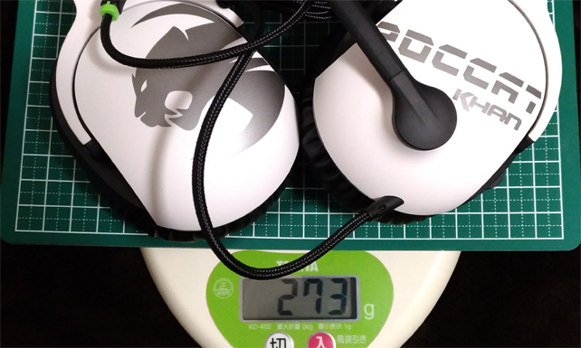 重量は今まで使っていたTURTLE BEACHのEAR FORCE PX3(以降PX3と呼びます)とほぼ同じでした。ケーブルの分だけむしろROCCAT(R)KHAN PROの方が少しだけ重くなりそうですが、有線で耐久性の高さを求めたうえでの軽量化と考えれば、十分妥協できる重さだと思います。