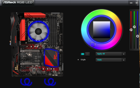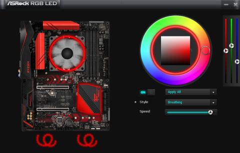Wraith SPIREのLEDは,”ASRock RGB LED”で,チップセット部のLEDと一緒に,モード変更できます.マザーボードの機能ですが,Wraith SPIREも一緒に変わるので,掲載します.
