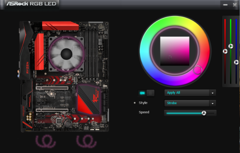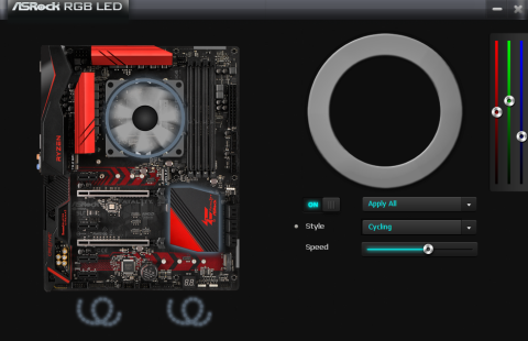 ”ASRock RGB LED”の設定画面です.styleでデフォルト設定の読み出しも可能ですが,色とスピードをカスタマイズできます.