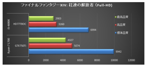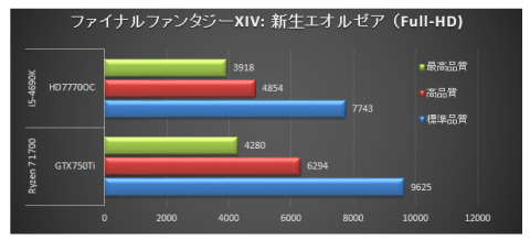 実ゲーム性能確認は,ファイナルファンタジーXIV:新生エオルゼア /蒼天のイシュガルド/紅蓮の解放者のベンチマークを使用します.画面サイズはフルHD固定として,画質を標準/高画質/最高画質で比較します.
