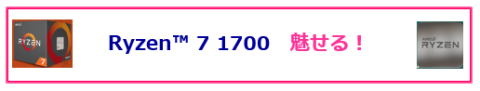 Ryzen™ 7 1700は,GPUを内蔵していないので,ビデオカードが必要になる点に注意が必要です.また,Ryzen™ 7 1700にはCPUクーラーが付属しますが,付属しないモデルがある点も注意が必要です.