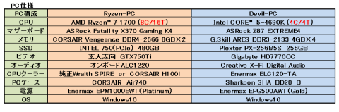 比較用PC構成(以下,Devil-PC)です.レビュー時と基本的には変わっていない構成です.