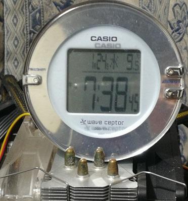 常用を探るのではないのでコア電圧とクロック数だけの変更にとどめております。今シーズン最強?の寒気団が来ている影響で室温は約10度程です。写真では9.5度ですが10度との間を行ったり来たりしていました。