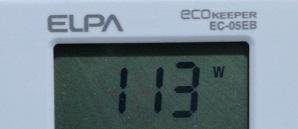 コア電圧を下げた1700X@2.6GHzでのCPUマイニング16T設定、CPU負荷100%状態で約113Wです。ハッシュレートは約4.7kほどでした。
