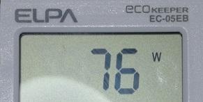 OSを起動しただけのデスクトップ画面ですとだいたい76W前後と80Wを切ります。