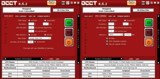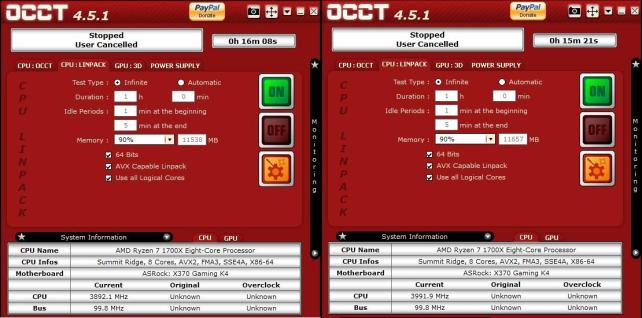LLCのレベルを上げてコア電圧に1.3V以上かけてあるとOCCT-LINPACKは通りますが、OCCT-CPUが1時間持ちません。30分程度でブラックアウトしたりフリーズしてしまいます。