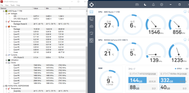 (あくまで、ここはRyzen7 1700なので)(もっとガチガチの話なら日記に書けと言われたら書きますしメッセでもOKならそちらでも)