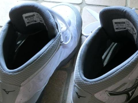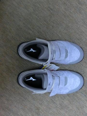 上からの写真を見るとミズノのデザインが白く浮き上がっているように見えます。