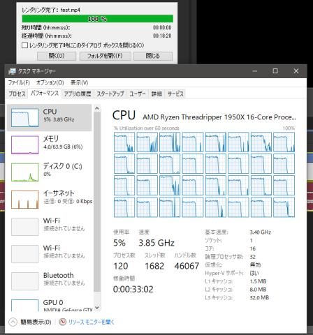 16コアを活かせるソフトを使うなら10コアの6950Xさんの活躍の場は皆無な性能差でした!