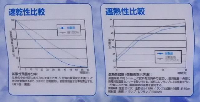 また、速乾性、遮熱性については製品パッケージにグラフによる性能比較が記載されています。