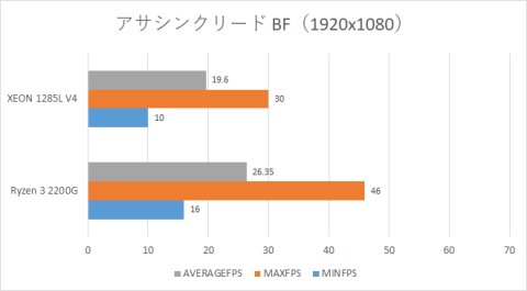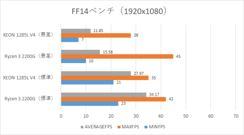 Ryzen(TM)3 2200G、Xeon1285L V4双方プレイには適さないレベル。