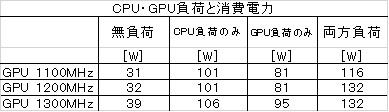 消費電力は実際のゲームではCPU・GPU両方負荷ほど行かない。