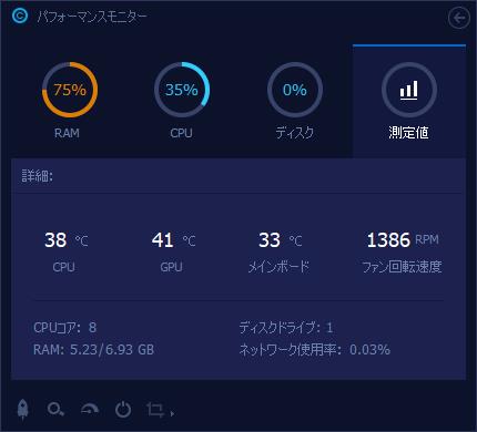 CPU・GPU・マザー等の温度や使用率は大体このような感じです。