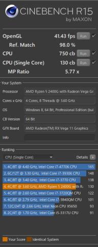 CHINEBENCH R15よりもわかりやすい結果でした。